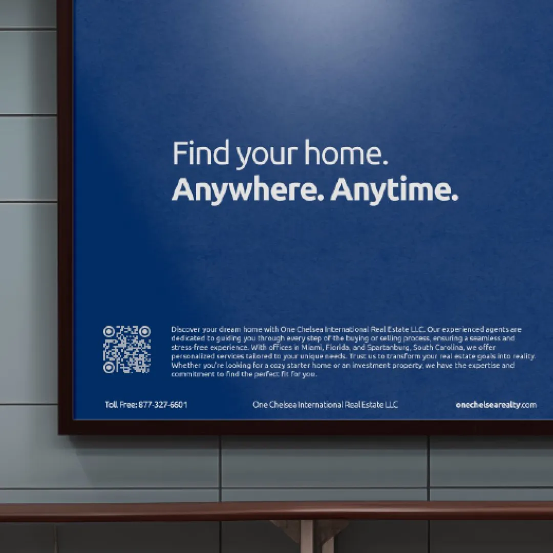 Desarrollamos la identidad marcaria para One Chelsea International Real Estate, con oficinas en Miami, Florida y Spartanburg, Carolina del Sur. Creamos una imagen distintiva que refleja su compromiso con la excelencia y la innovación en el sector inmobiliario. Este proyecto se desarrolló con un enfoque estratégico y creativo para garantizar que la marca resuene con compradores y vendedores exigentes. One Chelsea International Real Estate. One Place, Your World.™